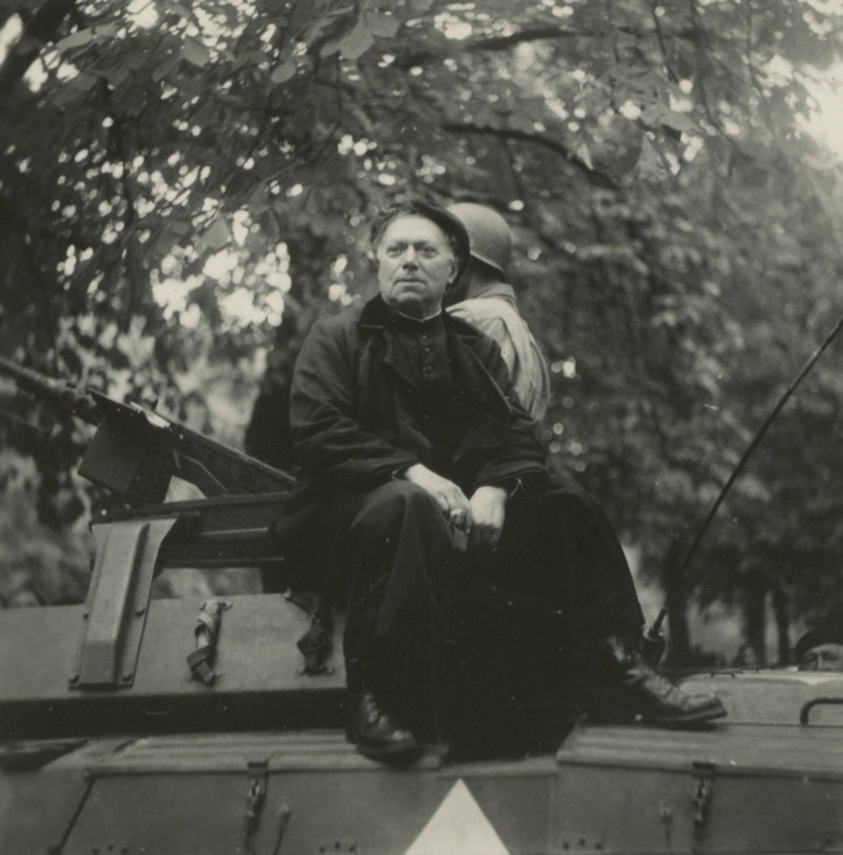 - Le chanoine Kir sur un chare, 11 septembre 1944. Avec l’aimable autorisation du Bien Public